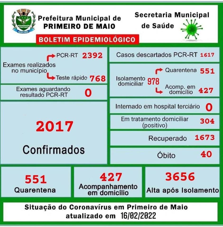 Boletim da data do 16 de Fevereiro de 2022, porém, postado em 17 de Fevereiro de 2022.