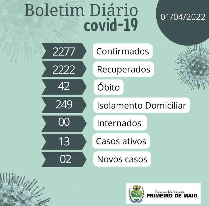 A Rádio Luas FM, através do Boletim Online oficial da Prefeitura de Primeiro de Maio, informa aos ouvintes a atual situação do vírus na cidade.
