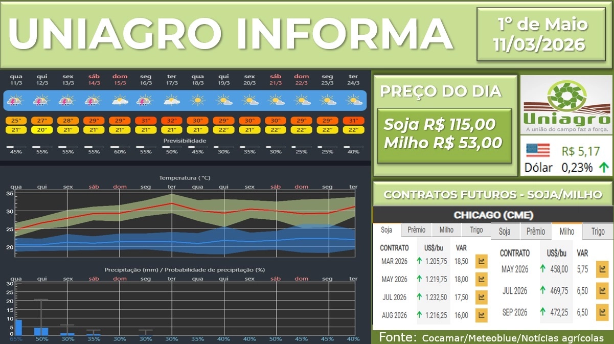 UNIAGRO INFORMA: PREÇO DAS COMMODITIES 11/03/2026