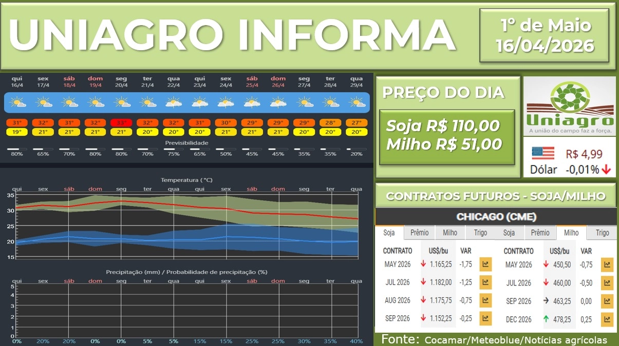 UNIAGRO INFORMA: PREÇO DAS COMMODITIES 16/04/2026