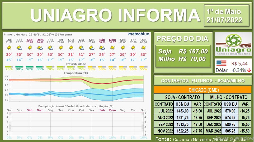 UNIAGRO INFORMA: PREÇO DAS COMMODITIES 21/07/22