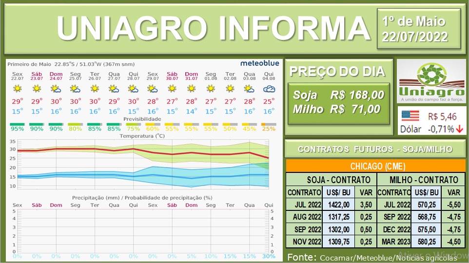 UNIAGRO INFORMA: PREÇO DAS COMMODITIES 22/07/22