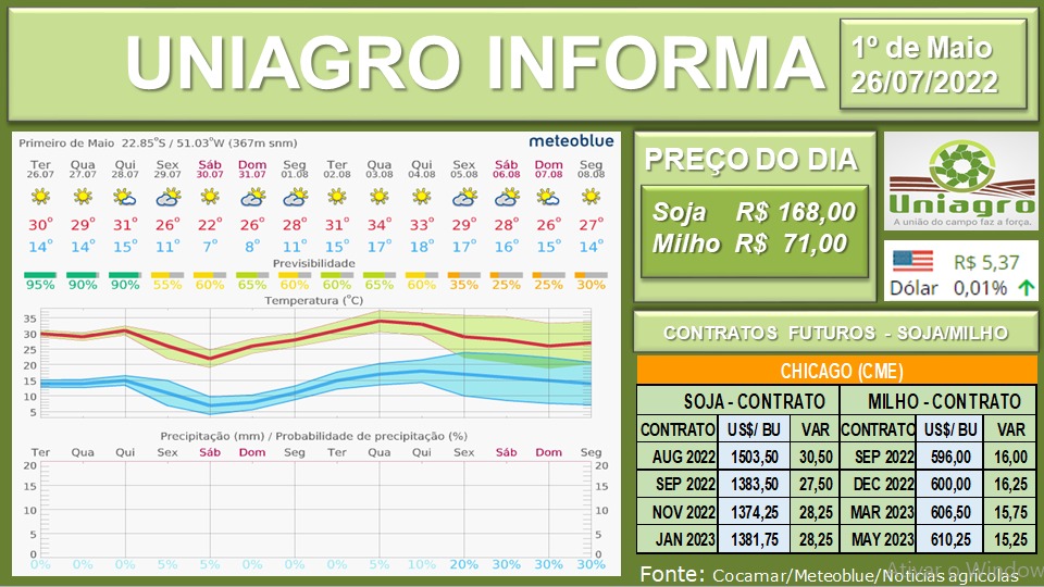 UNIAGRO INFORMA: PREÇO DAS COMMODITIES 26/07/22
