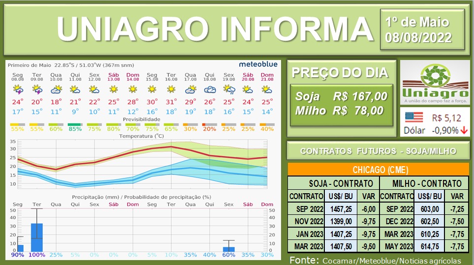 UNIAGRO INFORMA: PREÇO DAS COMMODITIES 08/08/22