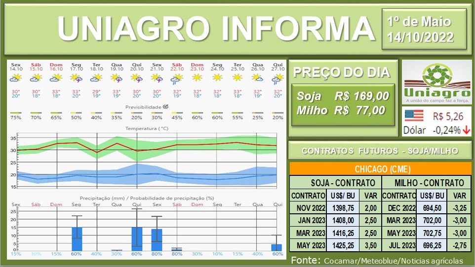 UNIAGRO INFORMA: PREÇO DAS COMMODITIES 14/10/22