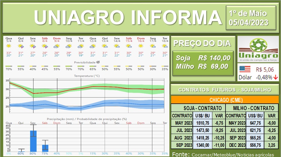 UNIAGRO INFORMA: PREÇO DAS COMMODITIES. 05/04/2023