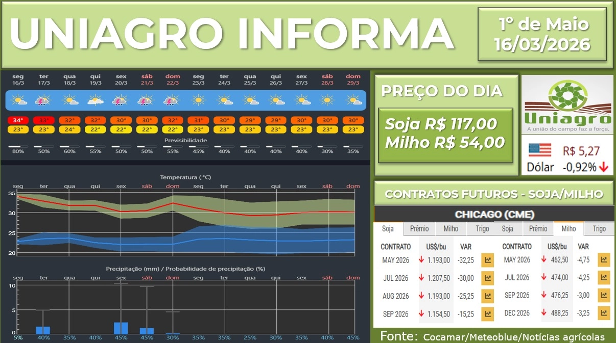 UNIAGRO INFORMA: PREÇO DAS COMMODITIES 16/03/2026
